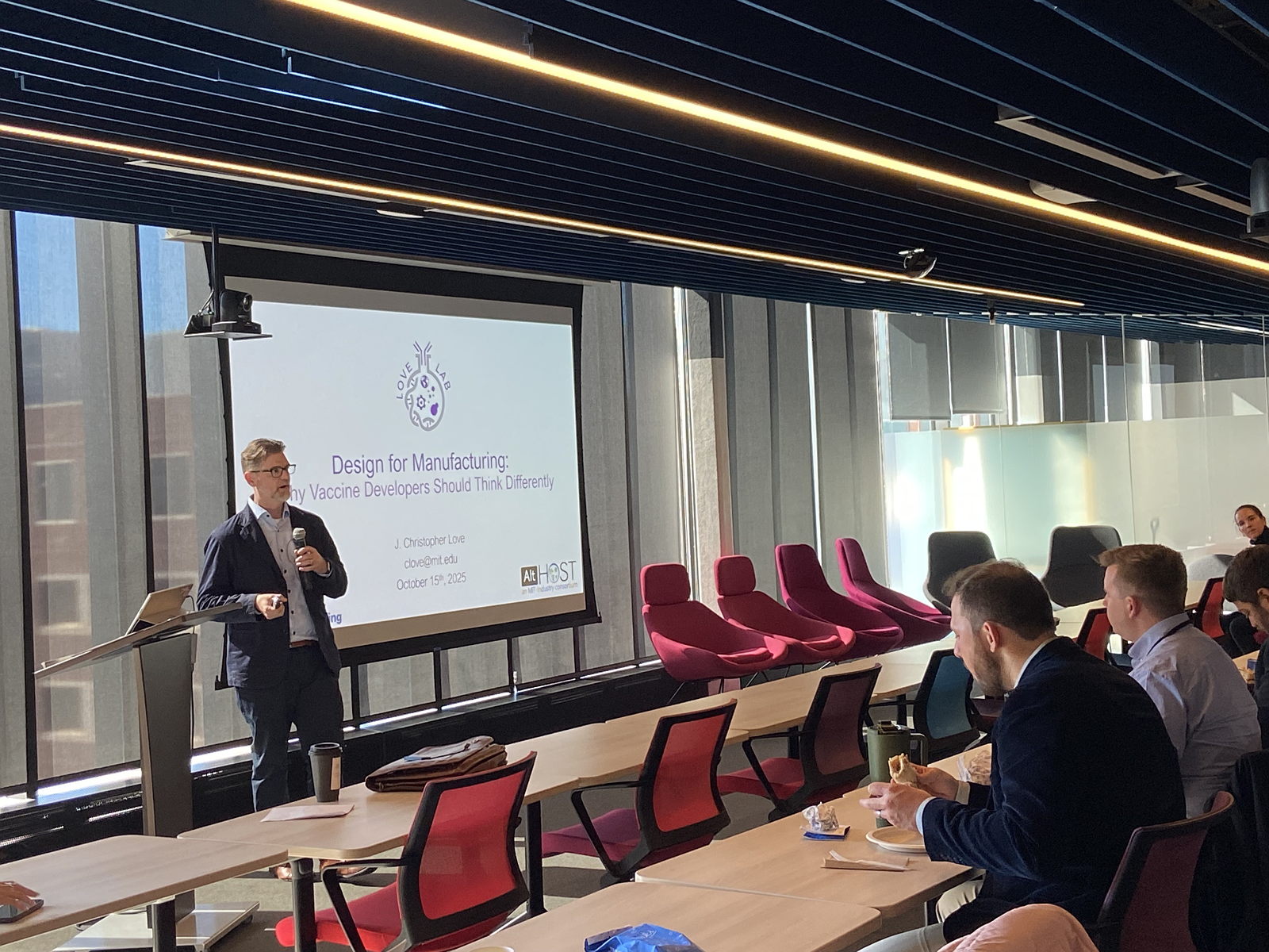 We organize faculty dinners with MIT researchers who have active biotech industry collaborations (i.e., faculty who have founded startups or are on scientific advisory boards of companies), run a recurring “Basics of Biotech” seminar series to orient students to core areas of the sector (R&D, business, regulation, translation), and host various other seminar and networking events with biotech professionals, alumni, and founders. Together, these programs help students understand how scientific innovation drives company formation and patient impact, and lower the barrier for undergraduates and early trainees to join the field.